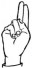 На ћирилици написано БОГДАН СОЈЕВИЋ састоји се из 13 слова [?]. Исписано ћириличном једноручном азбуком за глувонеме: